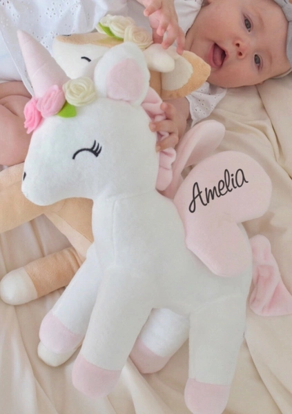 Pluszowy Jednorożec z wianuszkiem rozmiar M- Biały
